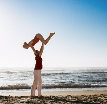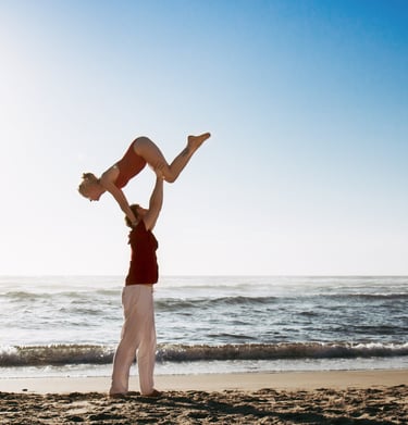 Jeg tilbyr samtaleterapi, yogaklasser, massasje og akrobatisk yoga for alle nivåer.